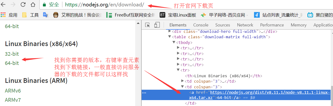 安装成功后,使用 wegt 下载 node.js 安装包,安装包按网上的教程都比较老,我们这里直接到官网找:
